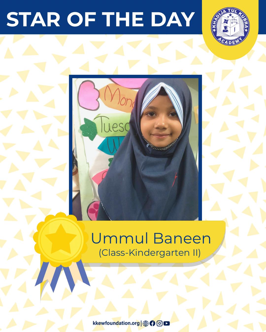Confidence, effort, and a beautiful smile — well done Ummul Baneen (Kindergarten II) ⭐💛