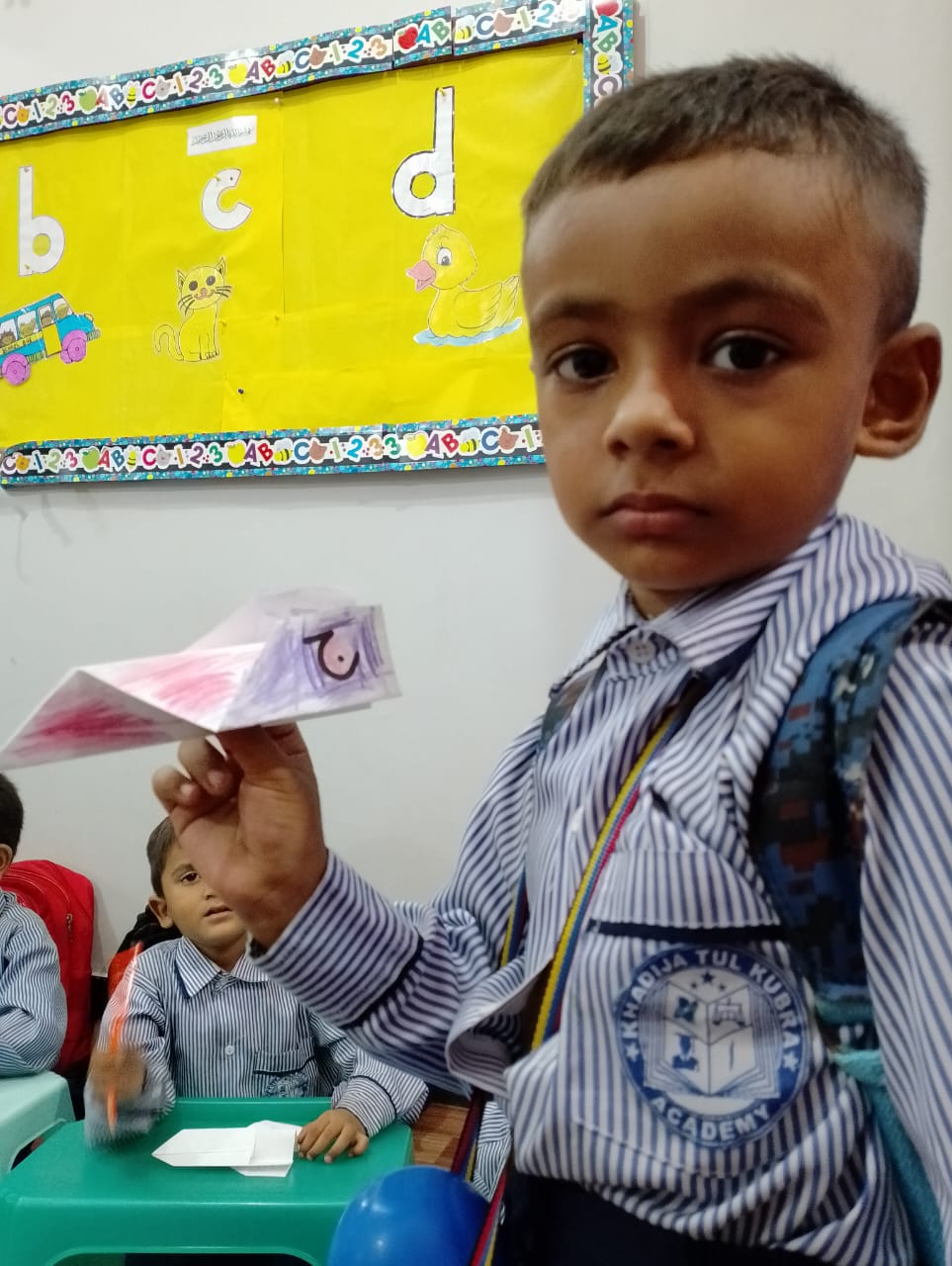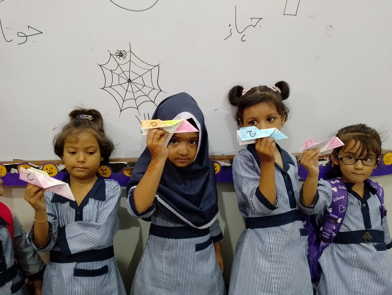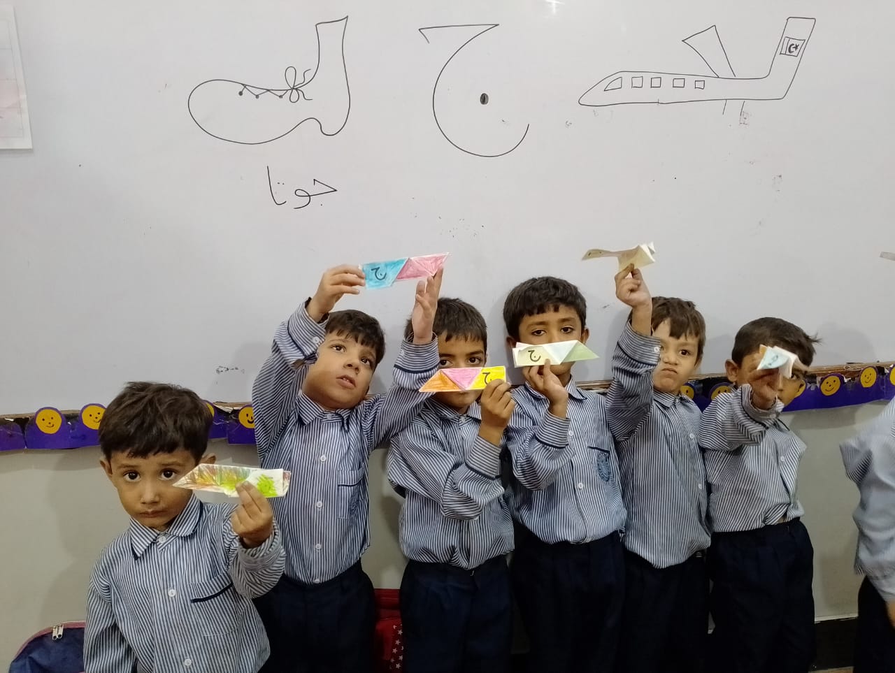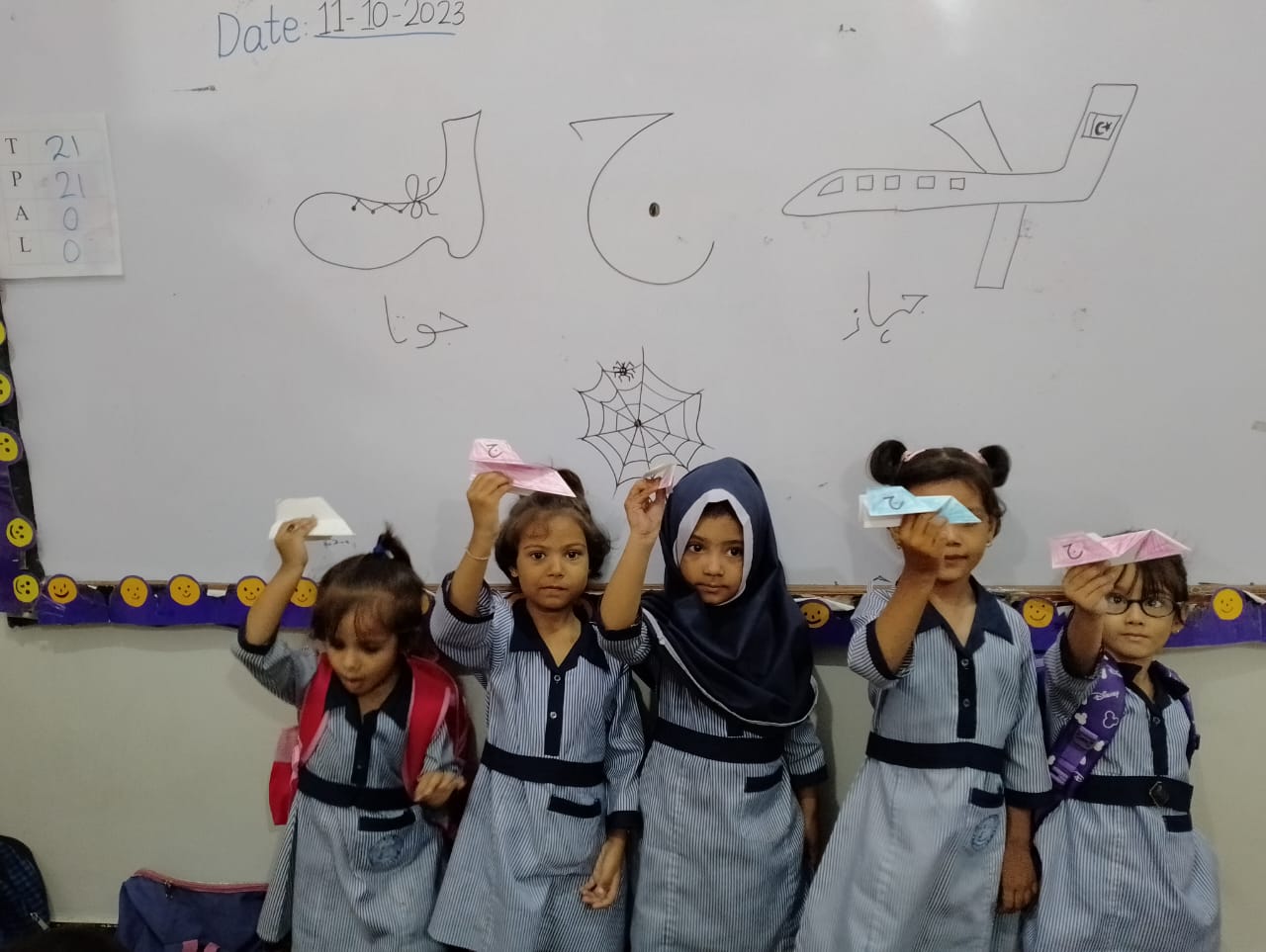 ہمارے نرسری کے ہونہار طالب علموں نے لفظ "ج" کی لکھائی، آواز اور ذخیرہ الفاظ کی مشق کی اور ساتھ ہی کاغذ کی مدد سے خوبصورت جہاز بنائے ۔
